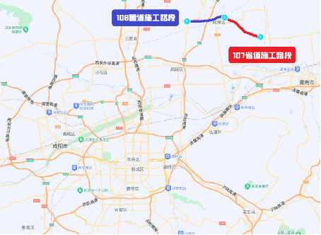 108国道、107省道施工路段示意图