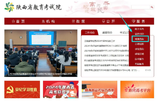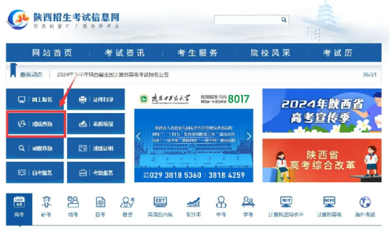 考生也可登录“陕西考试招生”小程序,进入2024年陕西省高考宣传季页面,点击“成绩查询”查询本人高考成绩。