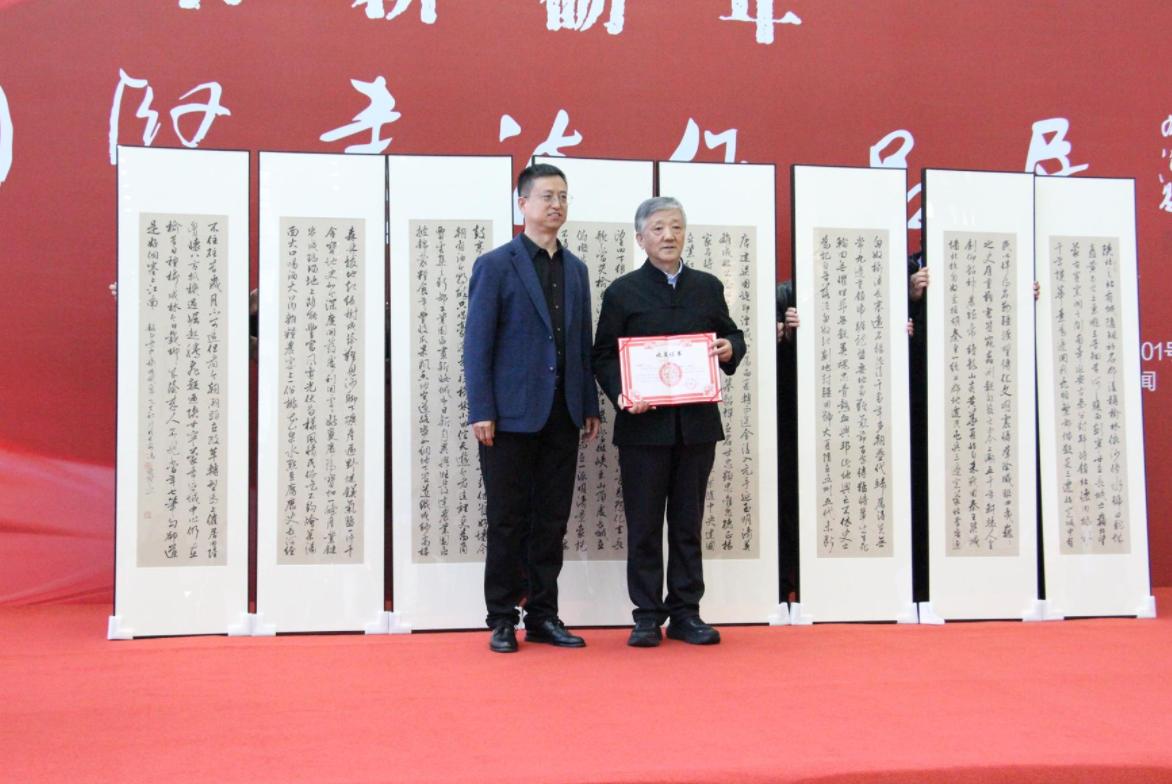 开幕式现场,冯国贤向榆林市档案馆捐赠了大幅书法作品,为充实地方当代文化馆藏、传承本土文艺成果提供了鲜活实物支撑。