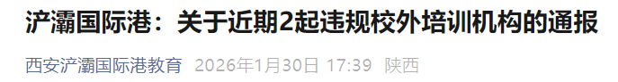 西安浐灞国际港深入贯彻落实国家、省、市“双减”政策要求,坚决查处打击违规违法校外培训行为,不断推进校外培训机构规范治理。现将近期违法违规校外培训情况公布如下: