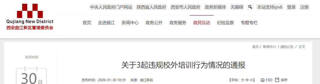 近日,西安雁塔区、经开区、浐灞国际港、曲江新区通报10起违规校外培训行为。