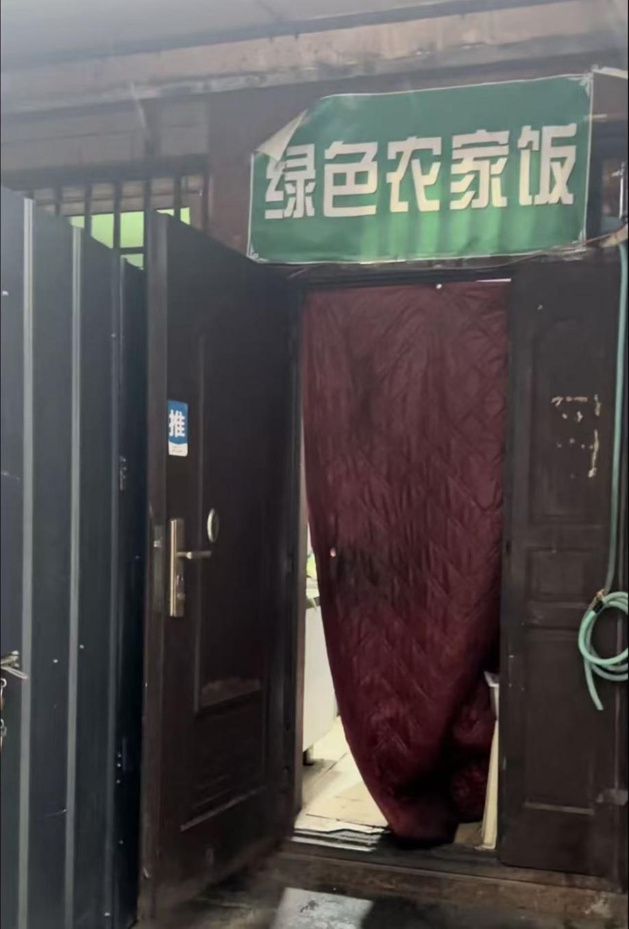 在村内一处门店,“四川豆花自贡盐帮菜”与“重庆江湖菜小炒”两家外卖店看似独立,门店招牌分开设置,且各自持有独立的个体工商户营业执照,但记者实地查看后发现,两家门店中间已被打通,共用一个后厨。该后厨环境同样脏乱差,地面布满油污,厨具随意堆放,未清洗的餐具杂乱摆放,食材未加盖防护,易造成交叉污染,存在严重的食品安全隐患。