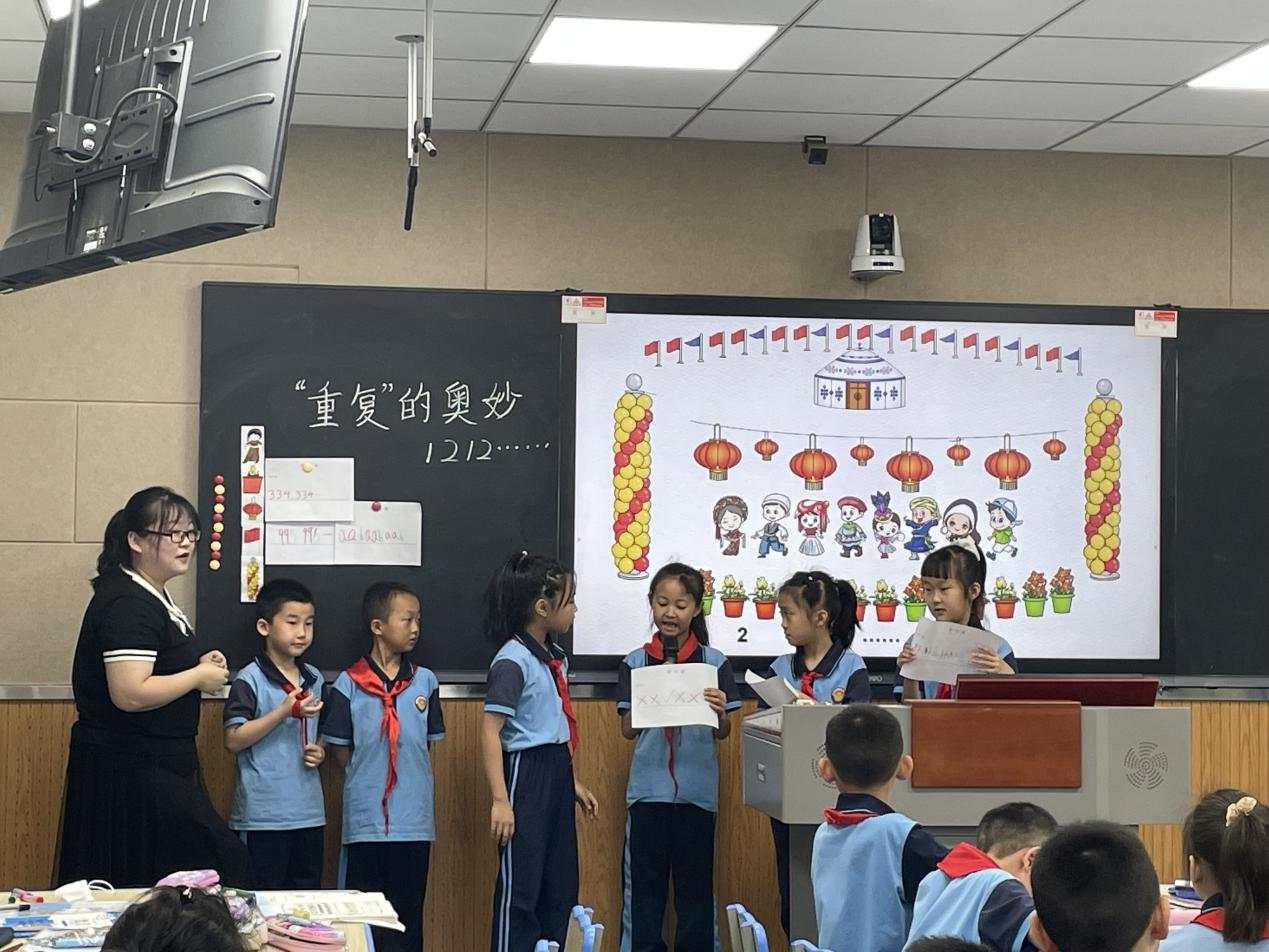 郭瑛老师执教的是北师大版二年级数学下册《“重复”的奥妙》。开课以最强大脑导入,创设情境,让学生感受到头脑风暴,将学生直接带入到教学中。
