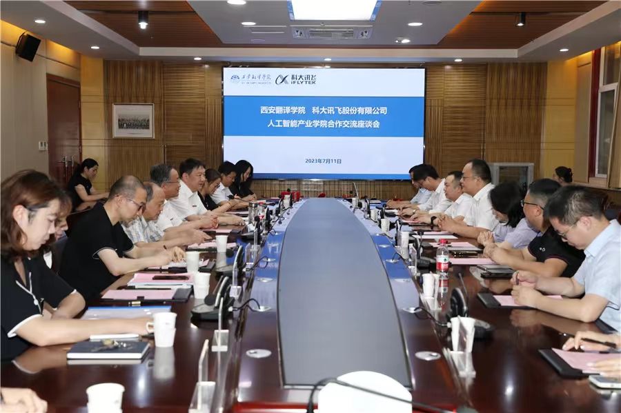 7月11日,西安翻译学院与科大讯飞股份有限公司人工智能产业学院举行合作签约仪式。科大讯飞股份有限公司副总裁孙亮、高教人才培养业务线总经理马季、丝路总部总经理彭梦明,西安翻译学院执行董事、校长崔智林,信息工程学院院长葛海波、副院长王艳丽、尤国强,及其他有关职能部门负责人参加会议。会议由副校长王霖主持。