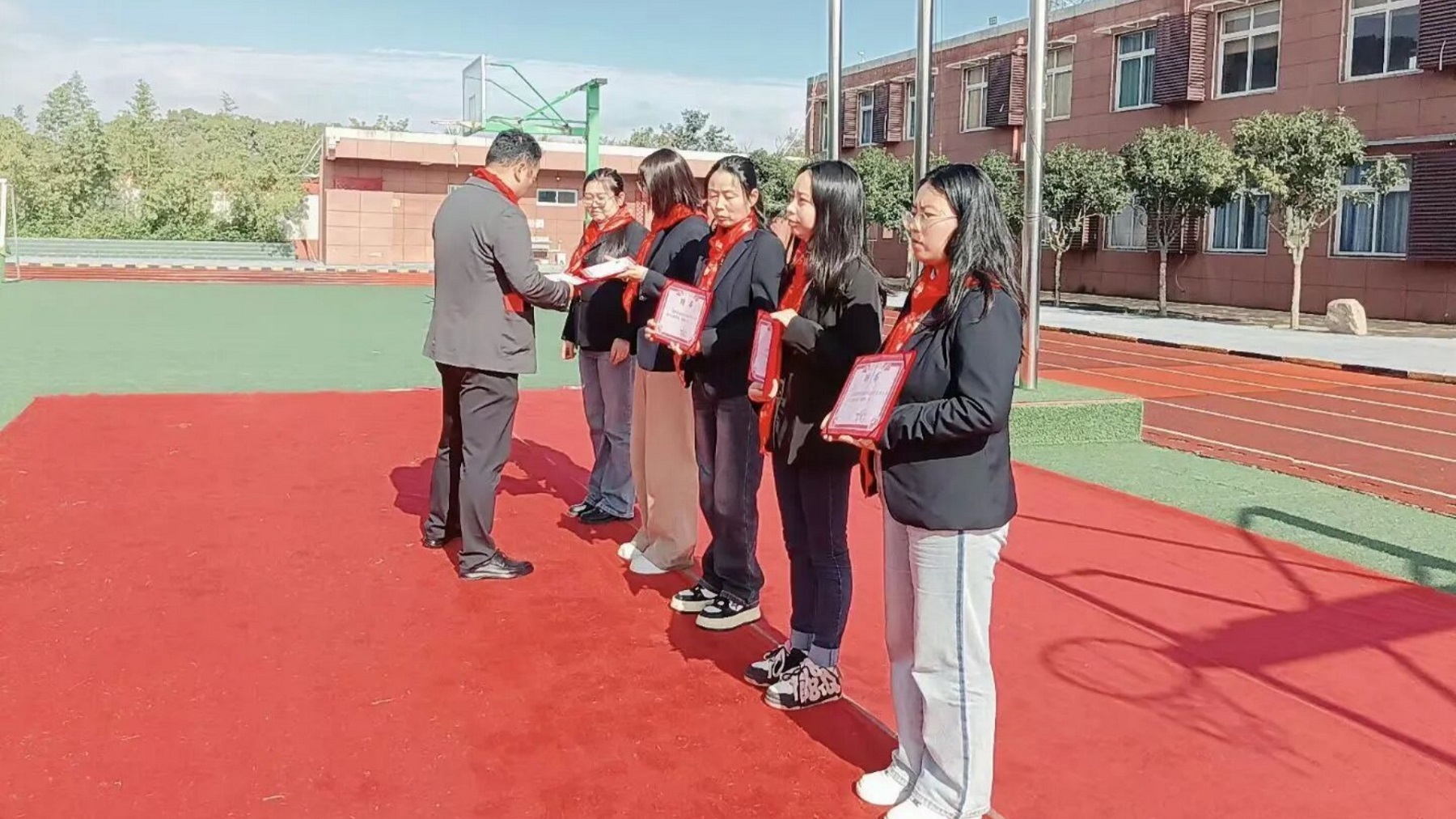 学校领导为中队辅导员颁发聘书,并为各中队授队旗。辅导员代表赵颖老师发言表示,将弘扬少先队自主、积极、向上的精神,为培育时代新人贡献力量。新队员代表李浩然同学用稚嫩而坚定的声音承诺:“我们一定会牢记少先队纲领,遵守章程,勤奋好学,顽强拼搏,迎接新时代挑战。”