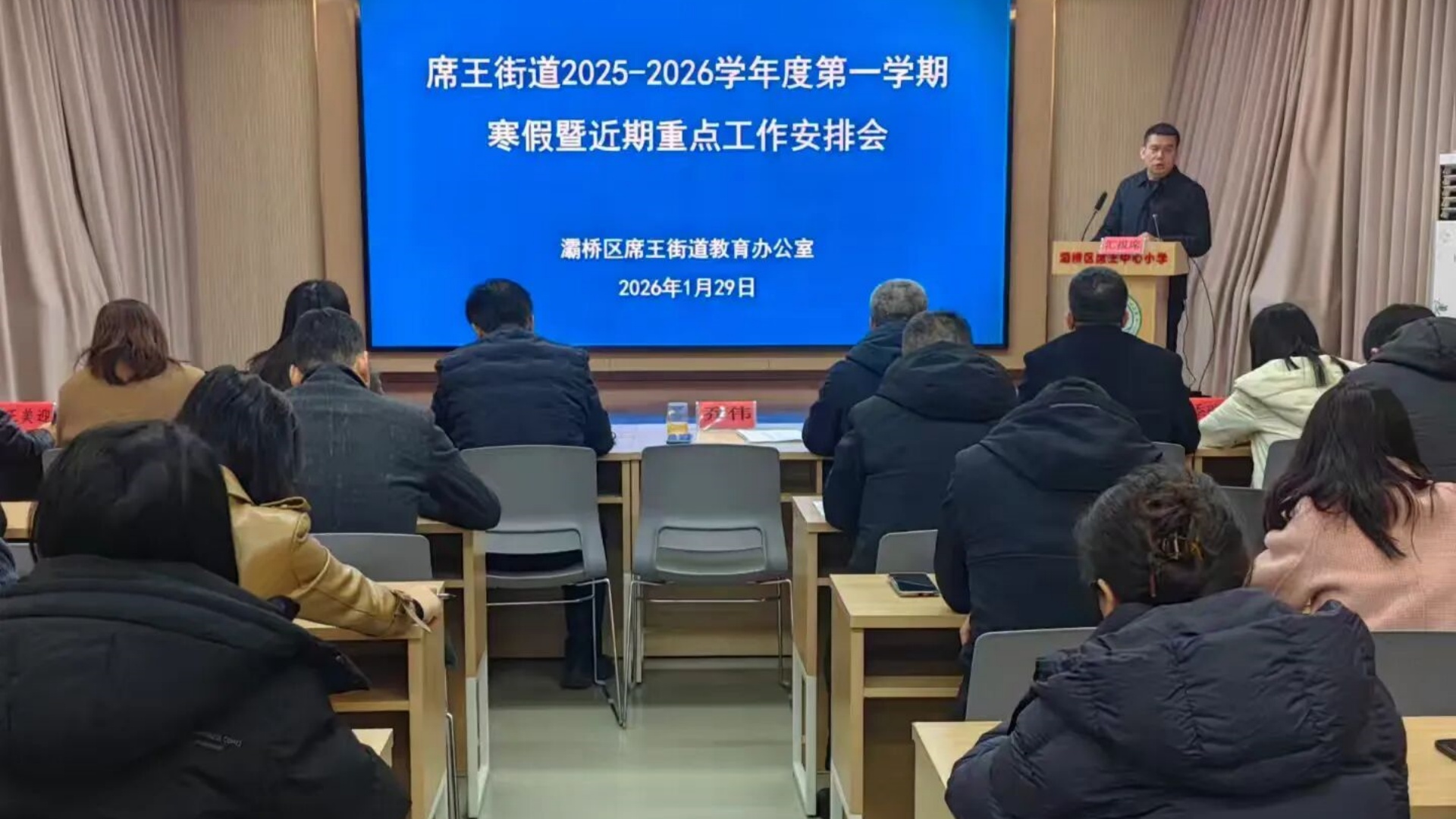 1月29日上午,西安市灞桥区席王街道中心学校召开2025年度教育工作考评会暨寒假工作安排会,旨在全面总结2025年度教育教学工作成效,科学谋划2026年发展思路,同时部署假期重点任务。中心校全体成员、辖区各小学及幼儿园校园长、教导主任、德育主任等相关负责人参会。