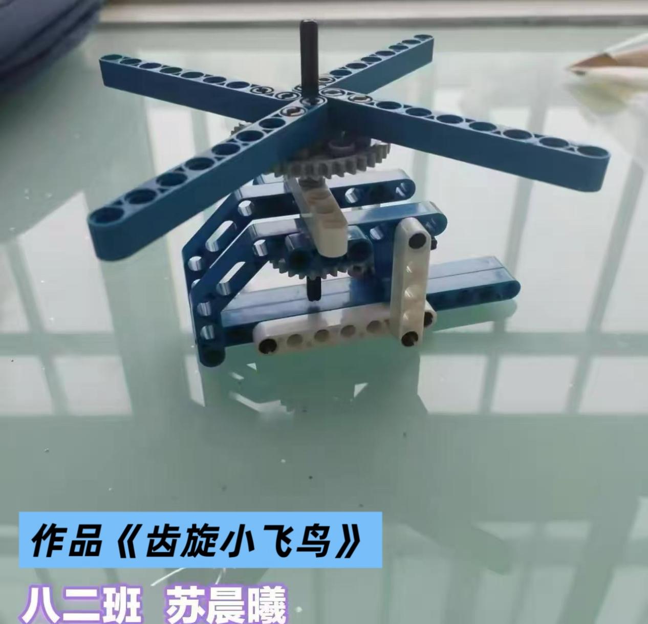 在“智造生辉”环节,学生们深入探索材料特性与能量转化原理。从拼装灵动购物车到胶带缠绕勾勒履带纹路的纸板坦克,从嵌入太阳能板的可开合汽车模型到齿轮精密咬合的积木直升机,再到电池驱动的木质双翼飞机,孩子们在力学平衡与能量转化的探索中,悄然完成从“动手做出”到“明理懂原理”的成长跨越。