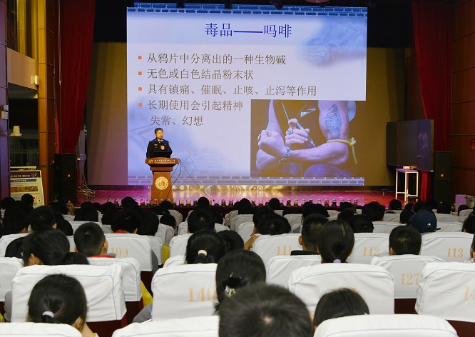 禁毒专题讲座环节,陕西省长安强制隔离戒毒所四级高级警长董宏波聚焦核心内容,结合青少年认知特点,用通俗易懂的语言讲解传统毒品与新型毒品的种类、外观特征,普及基础禁毒法律知识,穿插进行了简单互动,激发学生的学习兴趣。
