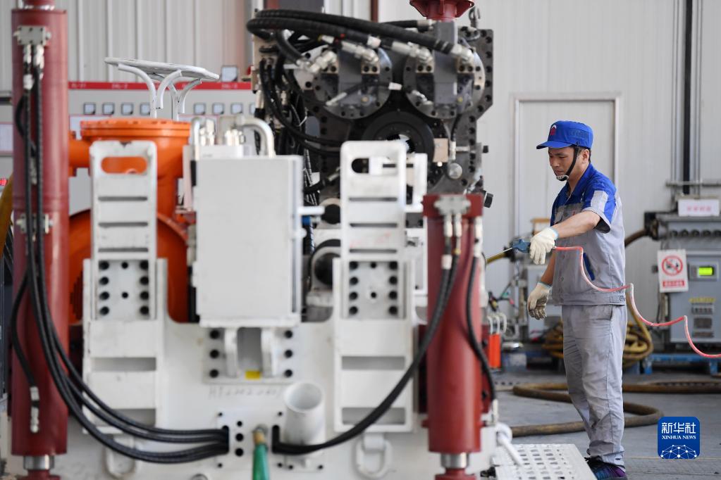 在位于秦创原总窗口所在地陕西省西咸新区的陕西太合智能钻探有限公司,工人准备对智能定向钻机进行性能调试(2022年6月17日摄)。新华社记者 李一博 摄