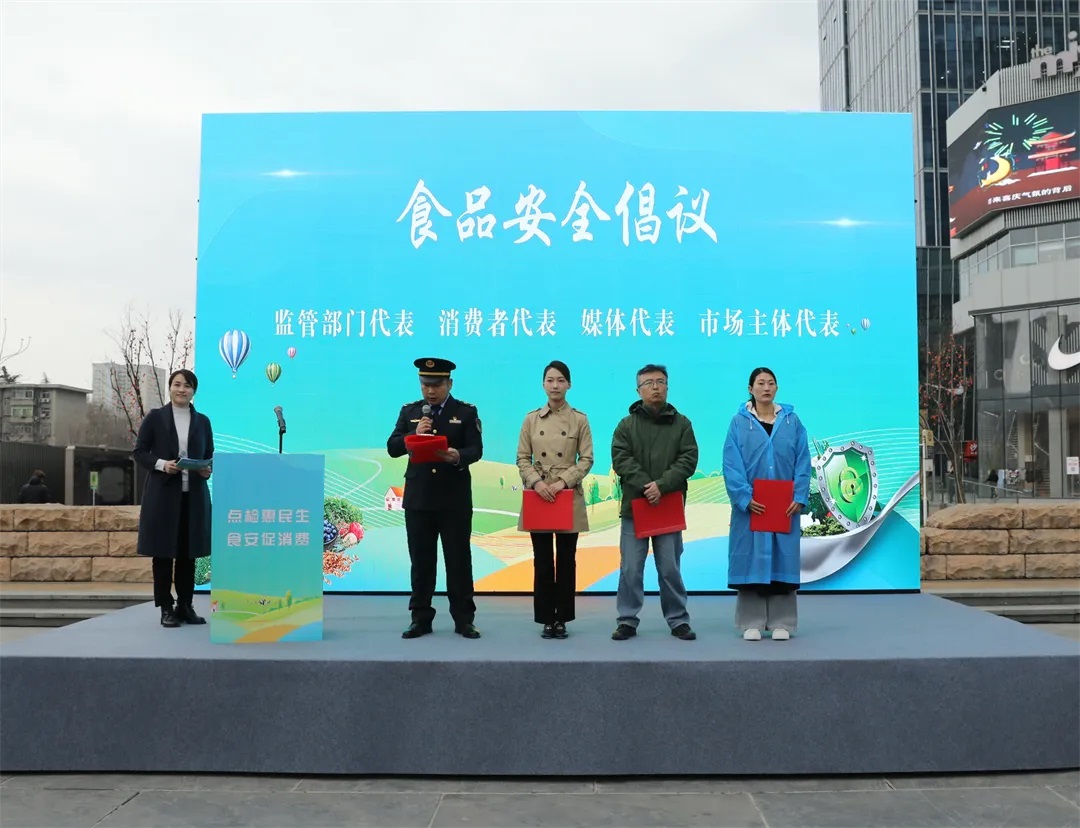 监管部门代表、消费者代表、媒体代表、经营主体代表现场发出倡议,号召各方携手同行,积极构建共建共治共享食品安全新格局。活动现场还组织开展了“市监志愿”活动,向公众展示并提供食品快速检测服务。