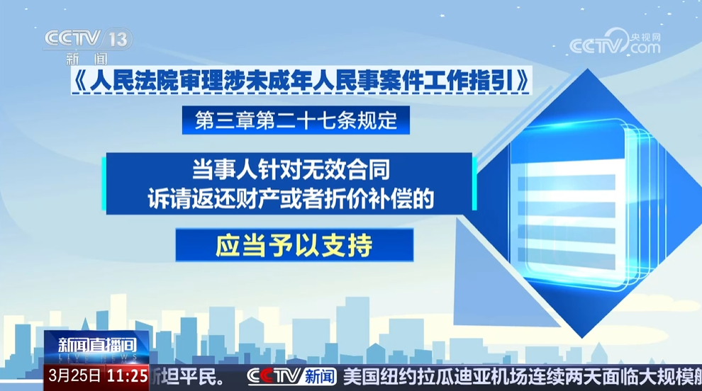 《指引》第三章第二十七条规定,当事人针对无效合同诉请返还财产或者折价补偿的,应当予以支持。蔡金芳法官表示,根据《中华人民共和国民法典》第一百五十七条的规定,合同无效的法律后果主要是返还财产、折价补偿、赔偿损失。对未成年人网络游戏充值、直播打赏案件,认定行为无效的,网络经营者应当返还未成年人相关的充值打赏款项。