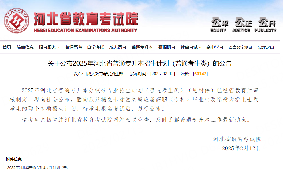 关于公布2025年河北省普通专升本招生计划(普通考生类)的公告