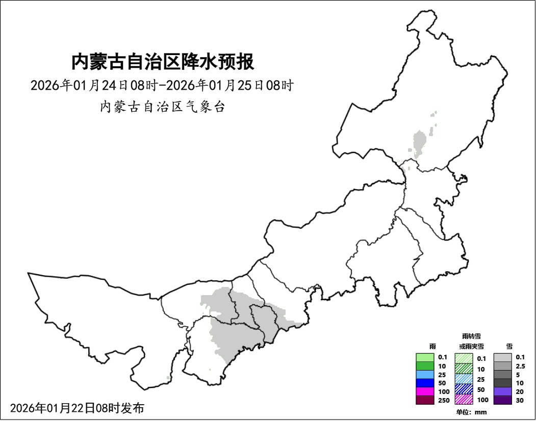 24日08时至25日08时,我区西部偏东、中部偏西、东北部偏西地区多云,有小雪;西部大部、中部偏东北、东部偏南部分地区有5、6级局地8级及以上偏东风或西北风;西部偏西地区气温开始下降。