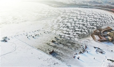 据活动负责人介绍,自湖面结冰以来,在确保安全的前提下,已累计接待游客超过2万人次。其中,元旦假期期间举办的“冬捕节”单日吸引近2000人前来游玩,成为当地冬季旅游的一大亮点。