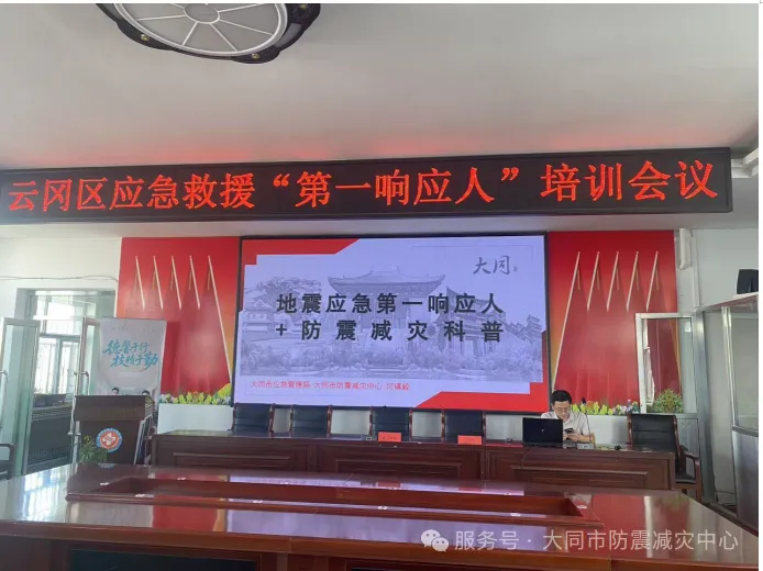 为了深入学习贯彻落实习近平总书记关于防灾减灾救灾重要论述精神,大力普及避险、防护、自救、互救等应急知识,着力提升基层灾害预防和防灾减灾救灾能力,科学有效应对灾害,贯彻落实《大同市应急管理局、大同市卫生健康委员会、大同市防震减灾中心关于在全市卫生健康领域开展应急救援“第一响应人”培训活动的通知》文件精神,近日,山西省大同市应急管理局、大同市防震减灾中心、云冈区防震减灾中心、云冈区卫生健康和体育局联合在云冈区人民医院会议室为云冈区人民医院、云冈区中医院、各民营医院、乡镇卫生院、社区卫生服务中心、社区卫生服务站60余位应急相关工作人员进行了地震“第一响应人”+防震减灾科普专题讲座,并通过卫健系统工作微信群推送了防震减灾科普资料。