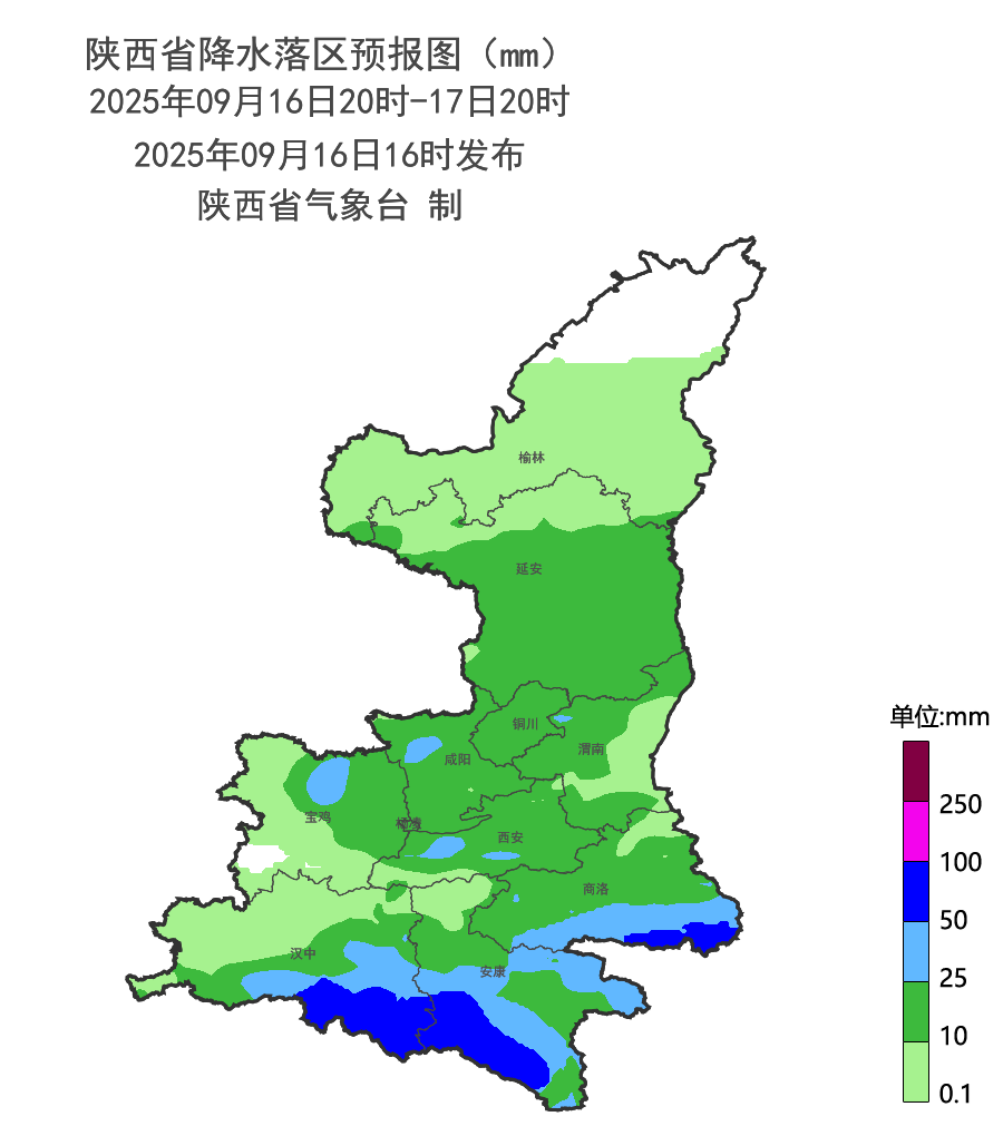 9月16日17时00分,陕西省气象局与陕西省农业农村厅联合发布农田渍涝和连阴雨灾害风险预警:预计9月16日至23日,陕北南部、关中、陕南大部有中到大雨,陕南西部有大到暴雨,局地有大暴雨,累计雨量超过300毫米,具有一定极端性。