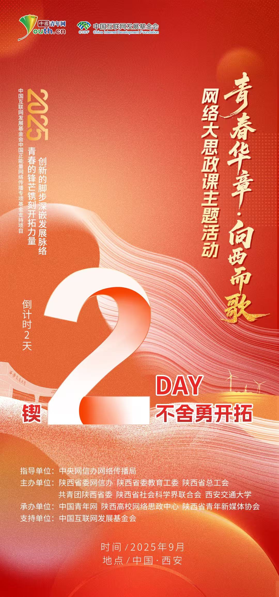 向西,是锲“2”不舍的开拓。倒计时2天!“青春华章·向西而歌”网络大思政课主题活动将于9月24日在西安交通大学启幕,聚薪火之力,展西部新貌!