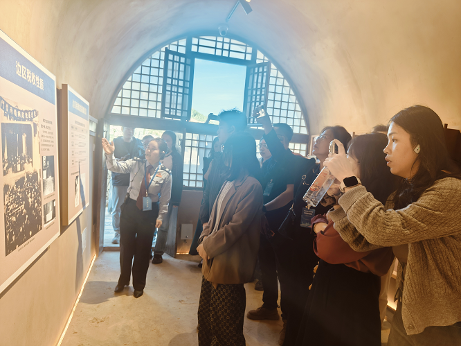 始建于1941年的陕甘宁边区税务总局旧址,坐落于宝塔区市场沟龙泉湾,占地面积6644.63平方米。这里不仅是红色税收的发源地,更是中国共产党税收事业发展的重要见证。采访团跟随讲解员的脚步,漫步在修葺一新的院落中,透过17孔窑洞、4间瓦房和1口税务井,仿佛穿越时空,回到了那个战火纷飞却又充满理想的年代。
