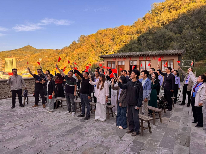 在旧址2号院落内,采访团踊跃发言,对旧址的进一步建设、红色税收历史的深入挖掘与传播等提出了诸多宝贵建议。随后,大家手持鲜艳的国旗,共同合唱《我和我的祖国》。