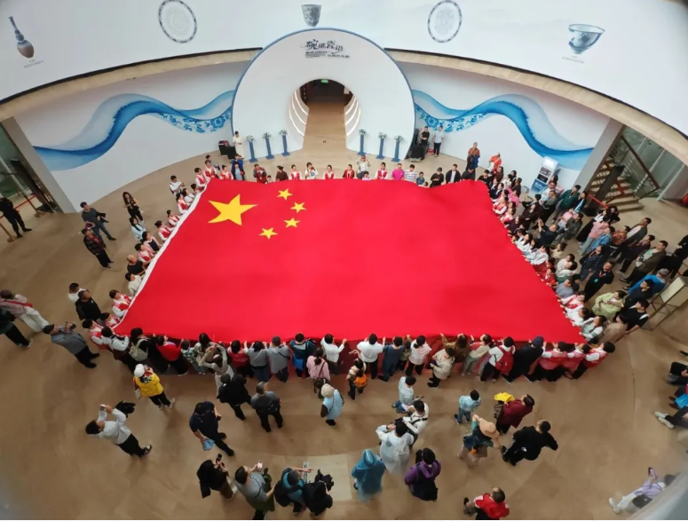 市民游客在陕西省文化馆曲江馆区前“向祖国表白”