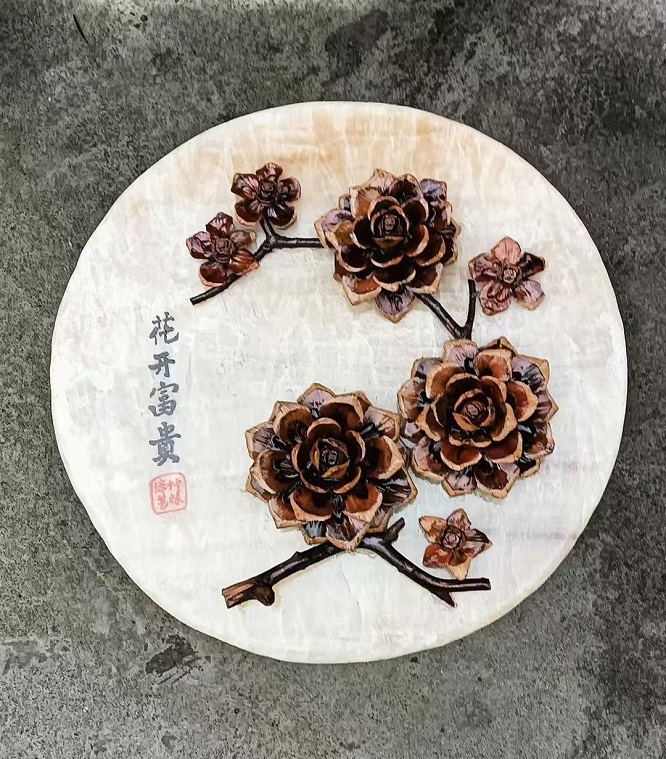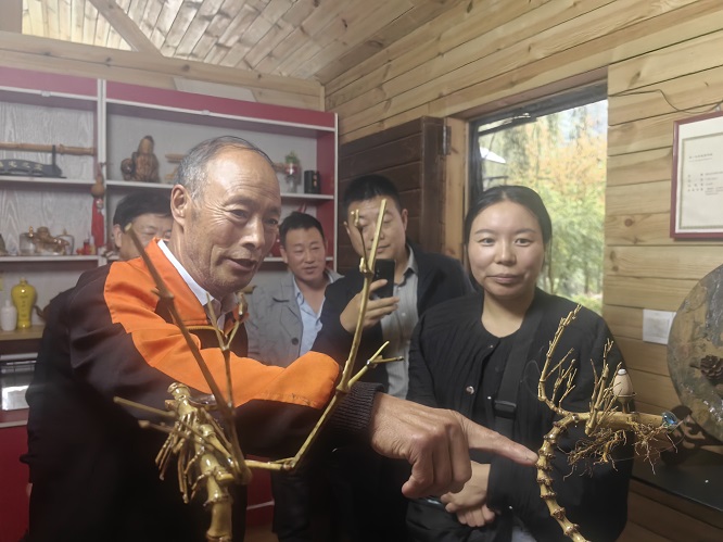 随着青铜关镇的乡村旅游蓬勃发展,方启祥的艺术品借此东风,远销广州、深圳、四川等地。“收入最高时,两天就有18万元进账。”谈及此,方启祥的欣慰溢于言表,但他更看重的是,“赚钱固然重要,但更重要的是自己的手艺被认可、被喜爱。”2024年10月,他带着“骞澜玉松牡丹艺术”亮相农高会,向更多人展示了家乡的蜕变与活力。
