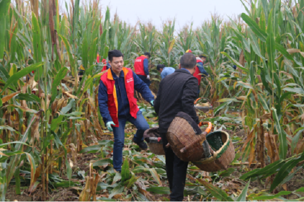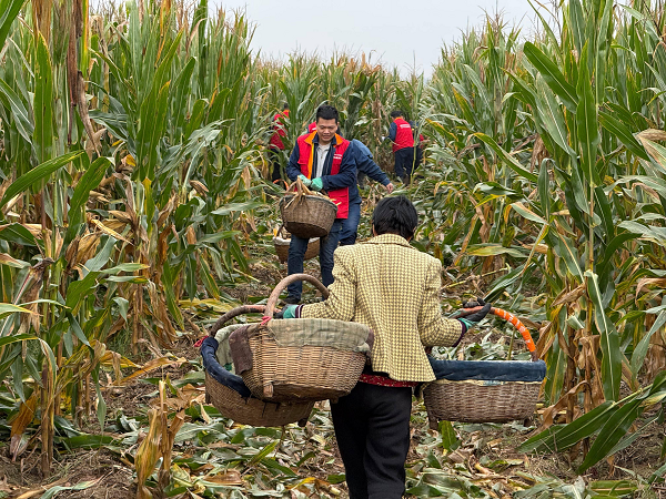 李大姐看着收获的玉米,激动地说:“这下可算踏实了!你们真是帮了大忙了!”