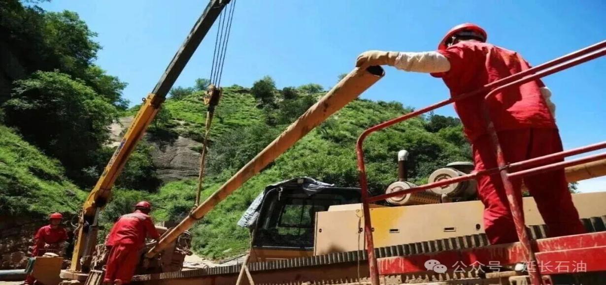 工程建设中面临诸多技术瓶颈与自然挑战。其中,38.6公里管道建设中需穿越10处“V型”冲沟,坡度陡、石层厚,全部采取人工开凿,最终不仅克服了瓦子川V型冲沟85°陡坡难题,而且在将军墓沟段实现单次下管19根、全长228米的管道铺设。工人们系着双重安全绳进行开槽作业,每一步都充满风险。
