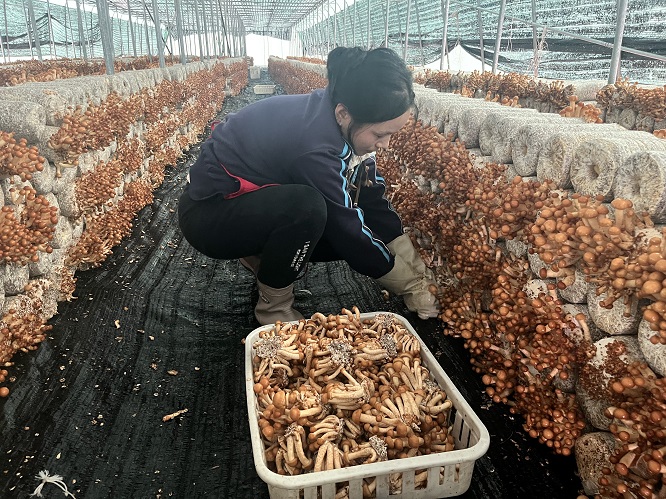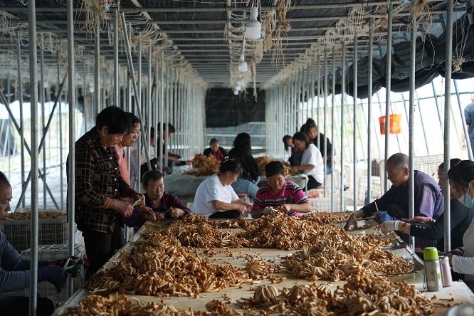 “滑子菇生长周期短,采摘后得抓紧时间处理。要经过剪根、焯水等多道精细工序,最后腌制成半成品,这样才能最大程度保留它的新鲜度,非常考验管理技术和处理的速度。”专程从河北省承德市请来的技术指导员王海林解释道。这种加工方式不仅有效延长滑子菇的保质期,显著提高了滑子菇的附加值,为当地村民创造了更多在家门口就业的机会,让大家不用外出奔波,就能靠双手增收。