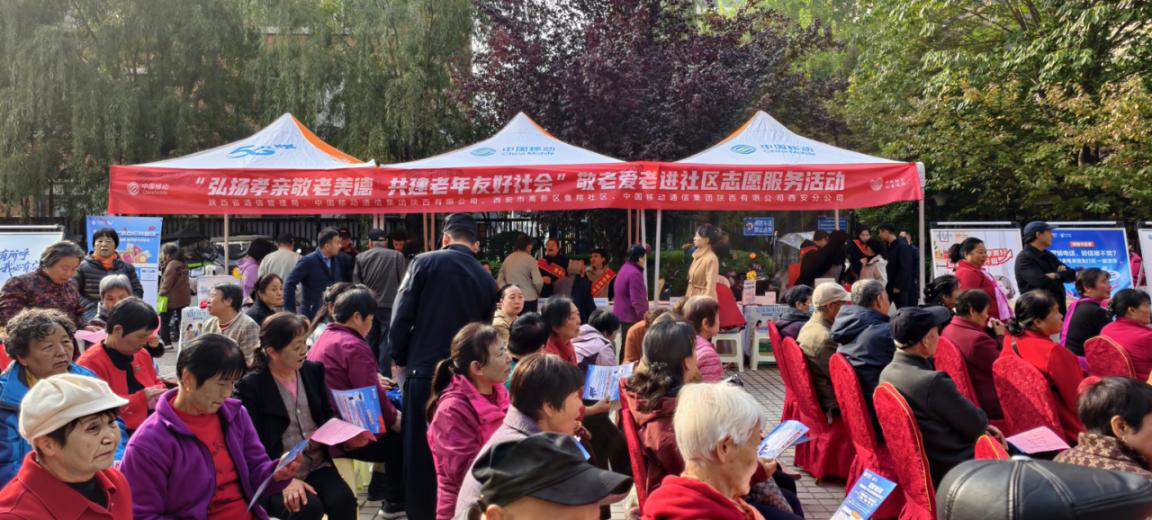 此次志愿服务活动集温情礼赠、文化盛宴、“适老化”服务于一体,为社区老人送上秋日里的融融暖意与贴心服务。活动在温馨融洽的氛围中拉开帷幕。主办方代表在致辞中表示,尊老敬老是中华民族的血脉传承,更是企业回馈社会、服务民生的责任所在。陕西移动西安分公司不仅为高龄老人送上慰问品,传递关怀与尊重,还搭建了“一站式”温馨服务驿站。老人们穿梭于各具特色的移动通信服务展区间,体验“智慧康养”专属服务,了解健康管理及数字化产品相关信息,现场气氛和谐美好。