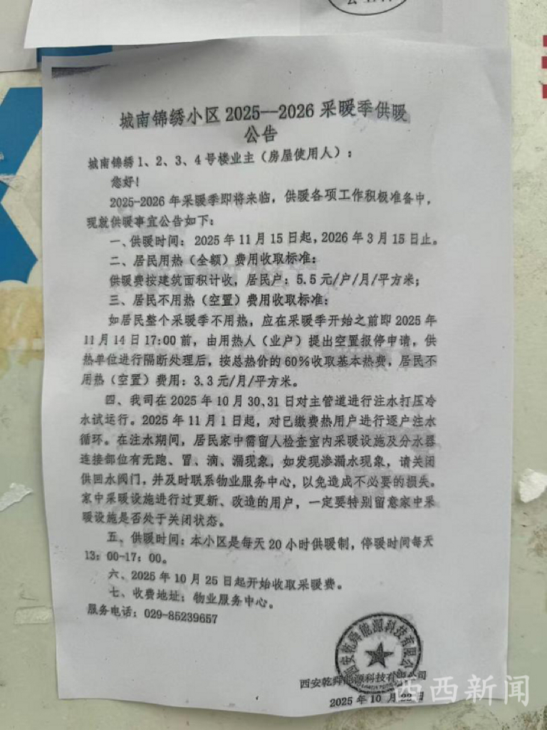 2025年-2026年供暖即将开始,供暖话题成为热点。近日,西安多个小区的业主反映,自己所在小区即使选择不供暖,物业也要收取高达总热费的50%至60%的空置费,直呼空置费好贵,想知道确定收费比例的依据。