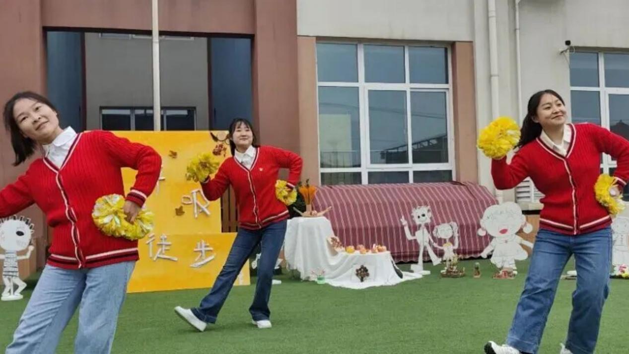 活动进入高潮环节。教师团队带来活力四射的《啦啦操》热身舞蹈,动感旋律瞬间点燃全场热情。随后,全体参与者进行从头部到踝关节的系统热身,为徒步做好充分准备。在“金秋携手,快乐同行”主题横幅前,家长与孩子共同签名留念,让这份秋日约定成为永恒记忆。