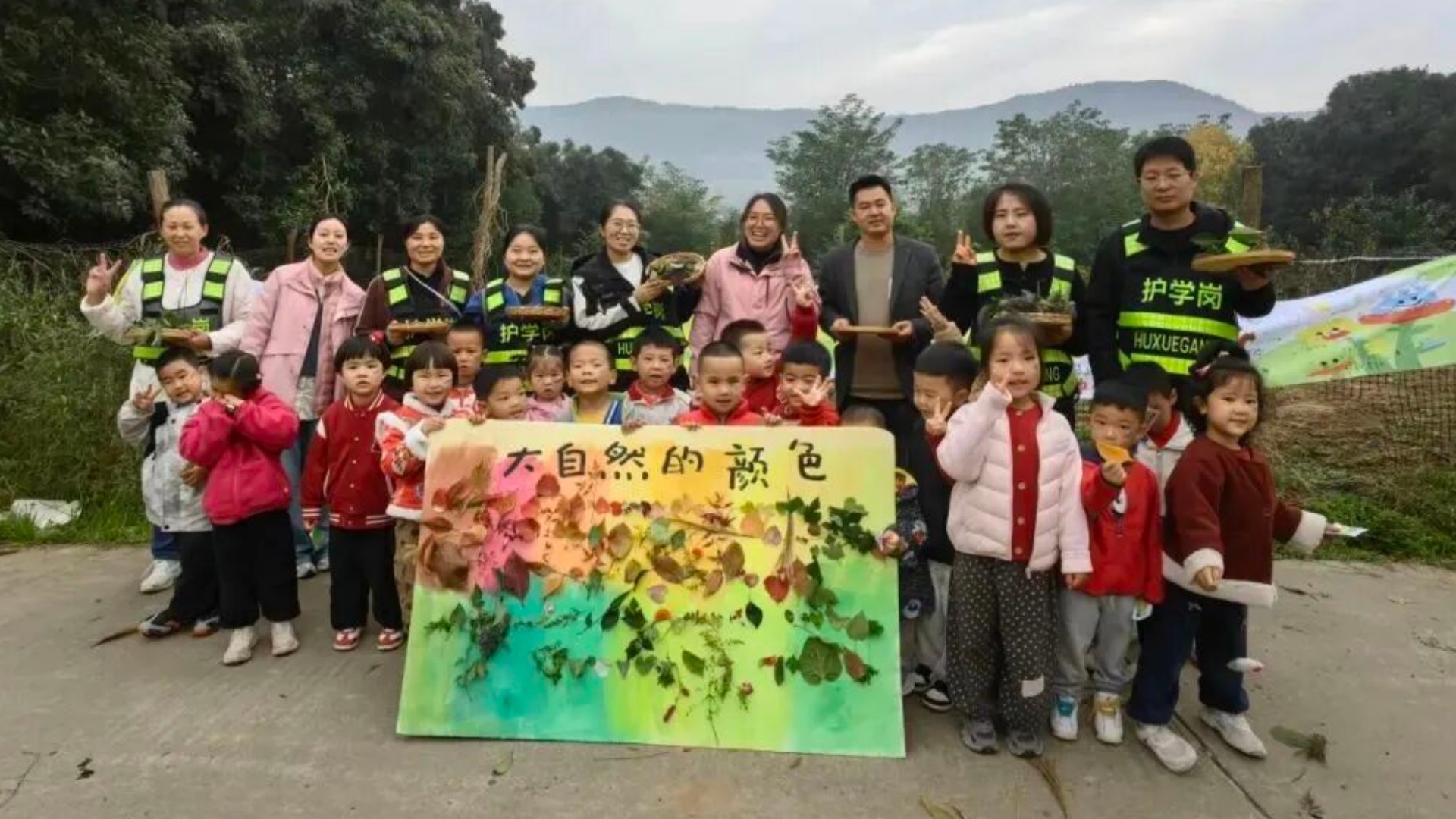 徒步过程中,幼儿园根据不同年龄段设计特色任务:小班幼儿沿途收集落叶,创作独一无二的树叶粘贴画,在动手实践中感受自然之美;中班孩子手持色卡寻找对应颜色树叶,在色彩探索中提升观察力与认知能力;大班幼儿则通过色卡模板收集树叶并拼贴姓名,在精细动作训练中激发识字兴趣。各环节既体现教育智慧,又充满童趣挑战。