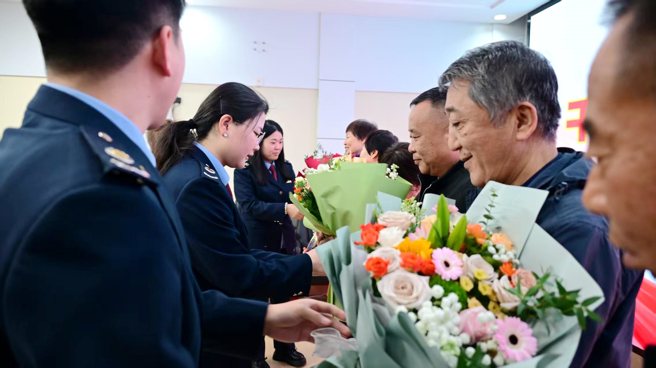 仪式上,冯研致辞并向退休干部致以崇高敬意,付强为退休干部代表颁发纪念品,青年干部献花,大家合影留念。充分肯定退休干部职业生涯,传递税务部门尊老敬老的优良风范。