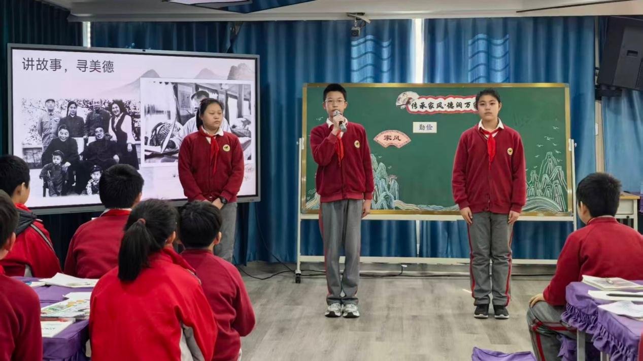 家风传承主题环节由常苗苗老师和六年级十班学生呈现道德讲堂《家风传承 德润万家》。通过“家风故事汇+美德实践分享”载体,以祖辈家训、身边榜样故事解读孝悌、诚信、勤俭等传统美德,让同学们在耳濡目染中感悟家风力量,实现美德扎根心底、外化于行的教育目标。