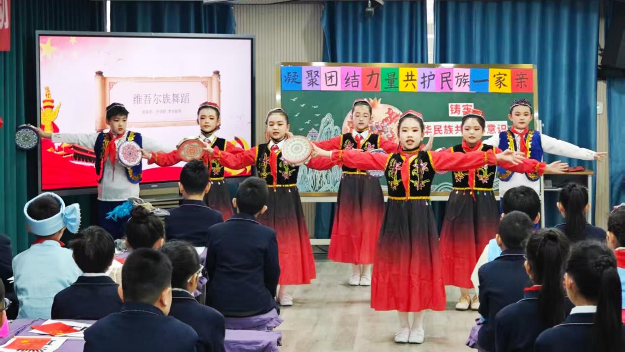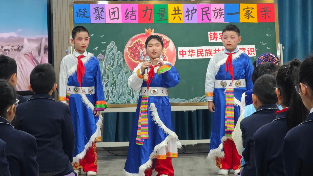 民族团结主题环节中,雒萱老师和四年级七班同学带来的队会课《筑牢团结根脉 争做时代好队员》,以“五十六个民族要像石榴籽一样紧紧抱在一起”为核心,通过民族文化小游戏、团结故事分享等互动环节,让同学们在欢乐中体会民族团结的深意,铸牢中华民族共同体意识,厚植家国情怀。