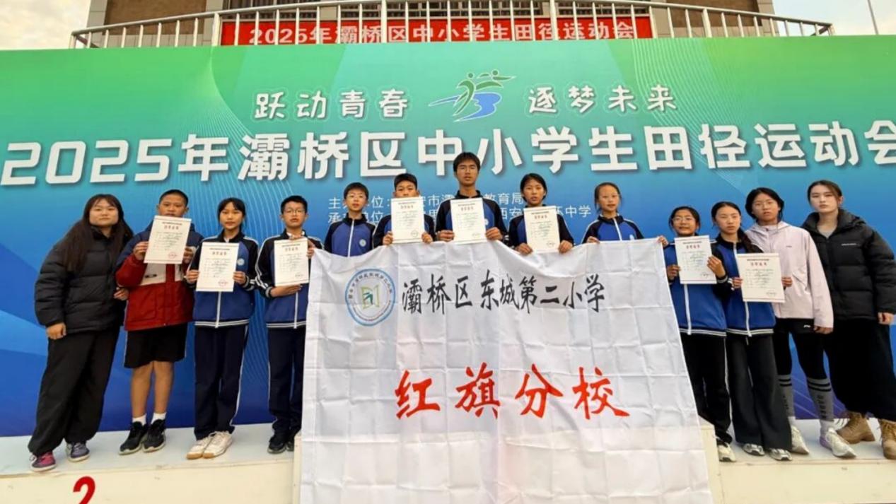 在近日圆满落幕的灞桥区2025年中小学生田径运动会中,灞桥区东城第二小学红旗分校以卓越表现脱颖而出,荣获小学B组团体总分第二名,20名参赛队员累计斩获30个单项奖项,展现了学校体育教育的丰硕成果。