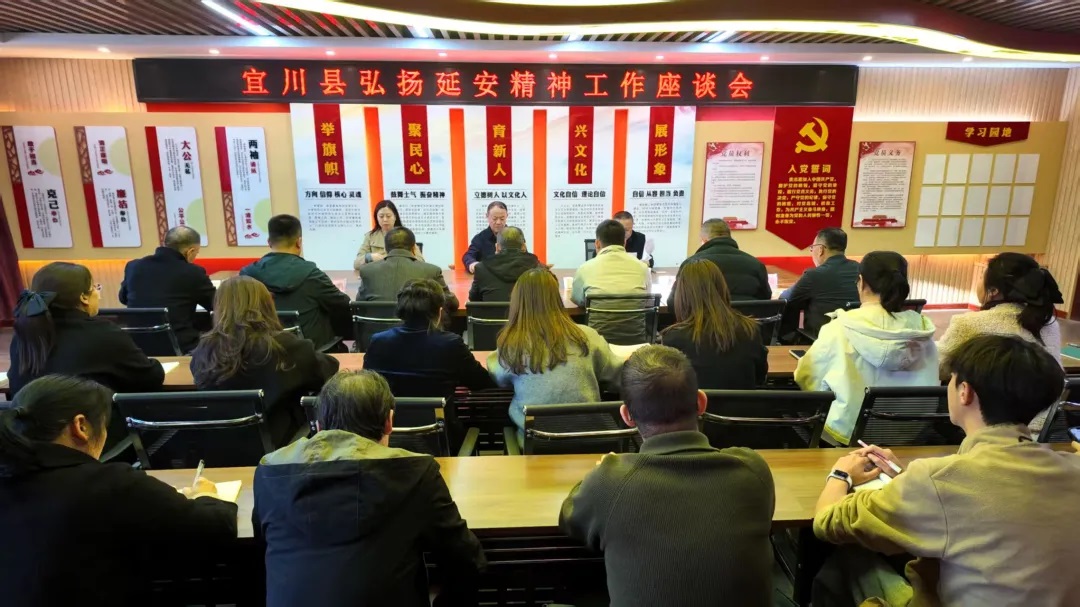 杨彦辉在主持座谈会时表示,传承红色基因是责任所系,弘扬延安精神是使命所在,要以此次座谈会为契机,坚持问题导向,狠抓整改落实,针对本次调研发现的问题和不足,迅速梳理,认真分析,推动全县弘扬延安精神工作整体提质增效。要聚焦中心任务,紧扣宜川红色资源丰富的优势,坚决扛起践行担当责任,把弘扬延安精神与学习贯彻党的二十大精神及历次全会精神深度融合,持续深挖本土红色故事与延安精神的内在联系,积极推出一批有深度、有地域特色的研究成果。同时,坚持以示范单位为标杆,在延安精神理论研究阐释上求深度,在宣传教育普及上求广度,在实践转化运用上求突破,坚定历史自信,增强历史主动,以实干担当书写宜川高质量发展的新篇章。