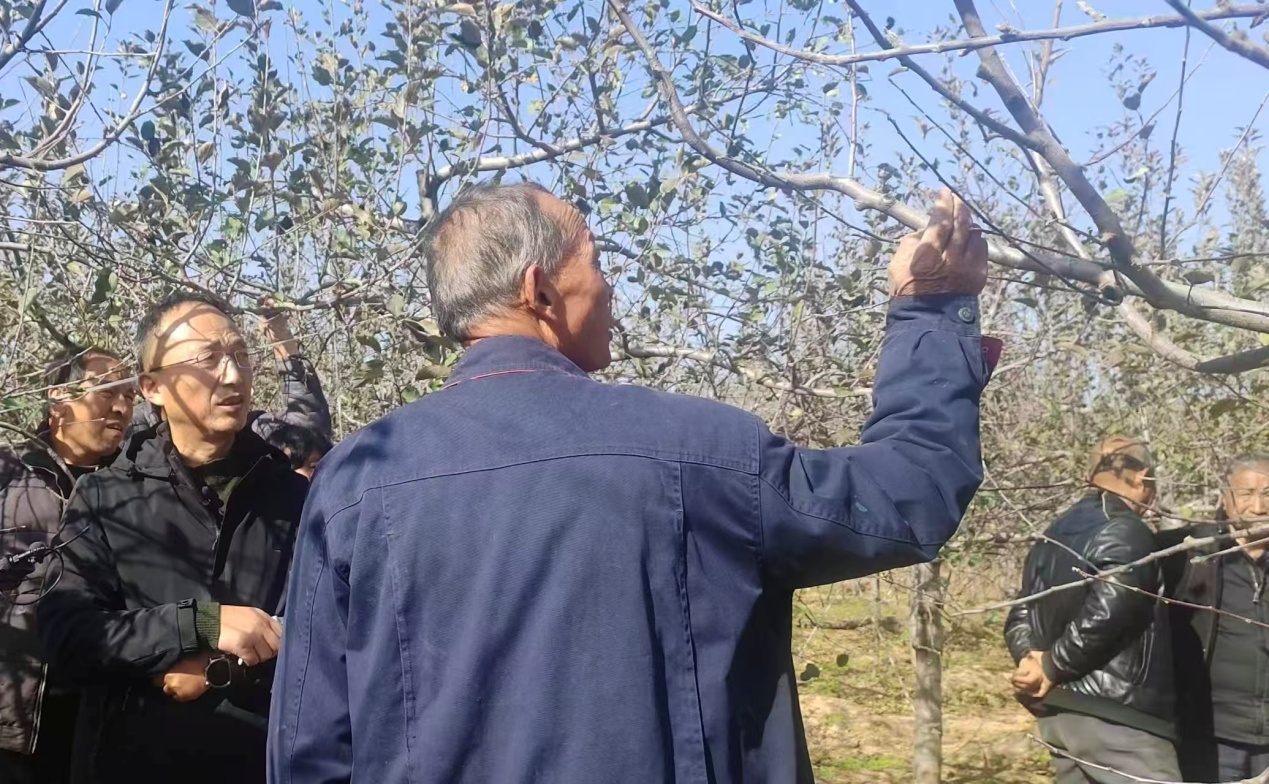 初冬时节,渭南市白水县史官镇南彭衙村的苹果园里暖意融融。“这枝得这么剪,才能让果子晒着太阳长大个!咱种苹果树的目的就是要多结果,结好果,卖好价!”白水县园艺站高级农艺师王小军举着枝剪刚开口,果农们的目光唰地全聚到了他手里的枝条上——这可不是普通的唠嗑,是当地果农农闲时节最盼的“田间充电课”。