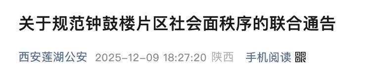据悉,此次整治时间自2025年11月24日起至2026年1月3日止,此后转入常态化管理。整治区域以钟楼为中心,东至端履门十字、南至永宁门、西至广济街十字、北至西华门十字的人行街道、地铁出口及周边区域,突出钟鼓楼广场、钟楼地下盘道、回坊文化风情街、骡马市步行街(兴正元广场)及粉巷、德福巷街等重点区域。