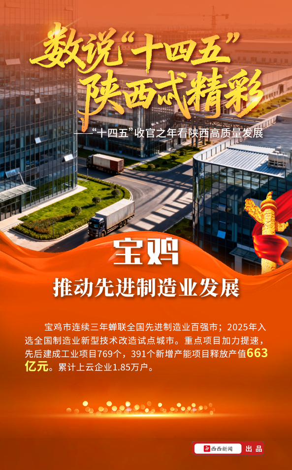 近日,在陕西省“高质量完成‘十四五’规划”系列新闻发布会上,宝鸡市政府答记者问,介绍了宝鸡“十四五”期间在推进制造业高质量发展、提升产业创新力和竞争力方面的建设成效。