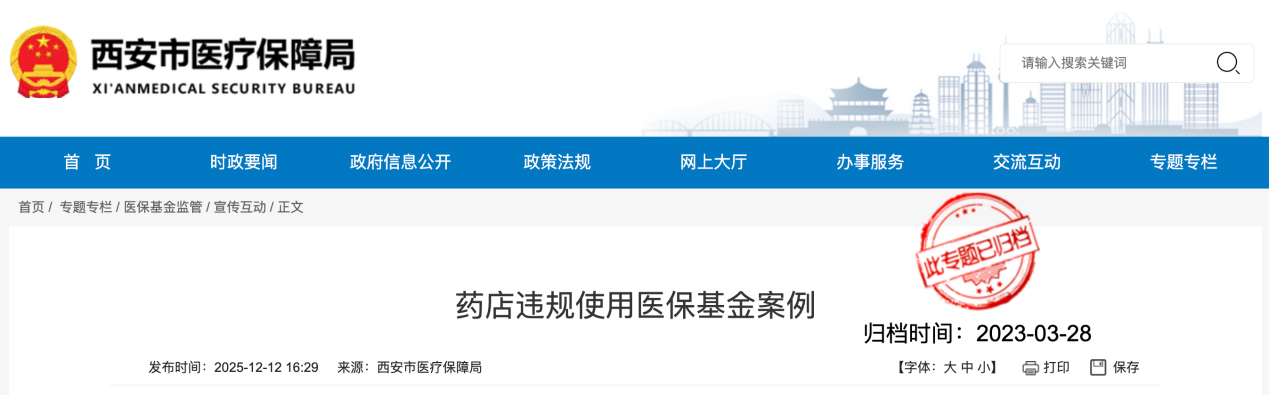 西安市华珍大药房有限公司,西安健馨医药有限责任公司、陕西医药控股集团孙思邈大药房连锁有限公司西安新寺路店、西安乐新医药有限责任公司、陕西唐药东万红大药房连锁有限公司、西安惠泽大药房有限公司第十分店、临潼区金梓源医药有限公司等7家药店因违规使用医保基金被处罚。