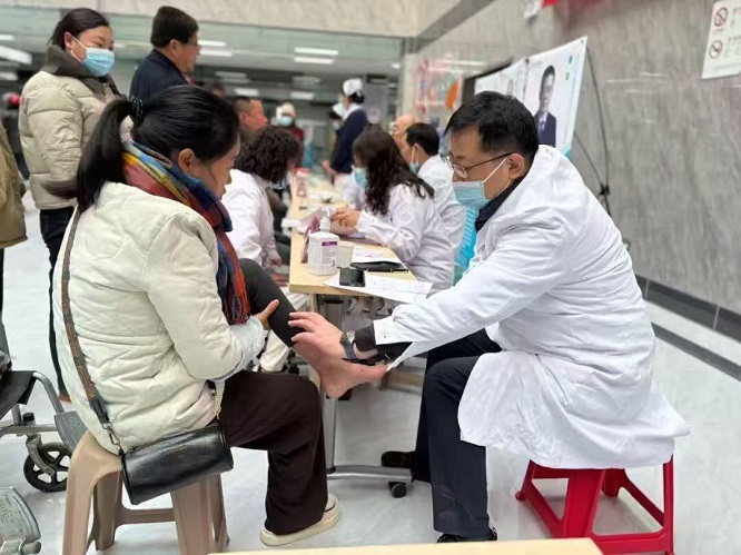 活动当天,齐向前教授、鹿军教授、曾玉红教授等三名专家志愿者早早来到现场,与医院的医护人员一起,为等候已久的群众提供义诊服务。专家们耐心细致地为每一位前来咨询的居民分析病情、解答疑问、提供诊疗建议,并针对常见病、慢性病的预防与康复进行了健康科普,获得了群众的一致好评。