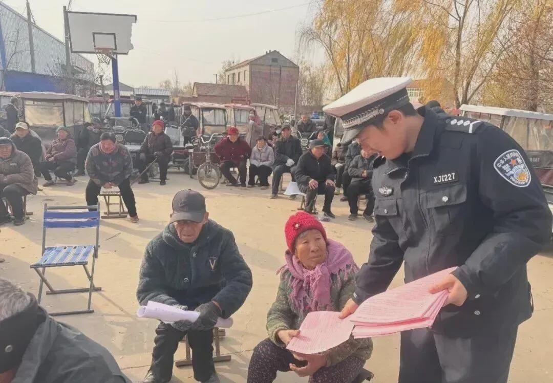冬季雨雪冰冻等恶劣天气增多,农村道路交通安全风险隐患显著增加,为提升村民交通安全意识,有效预防和减少冬季农村道路交通事故发生,商丘市公安局交警支队聚焦农村交通出行特点,精准施策、持续发力,扎实开展形式多样的冬季农村交通安全宣传活动,为农村群众编织起一张严密的交通安全防护网,筑牢冬季农村交通安全防线。