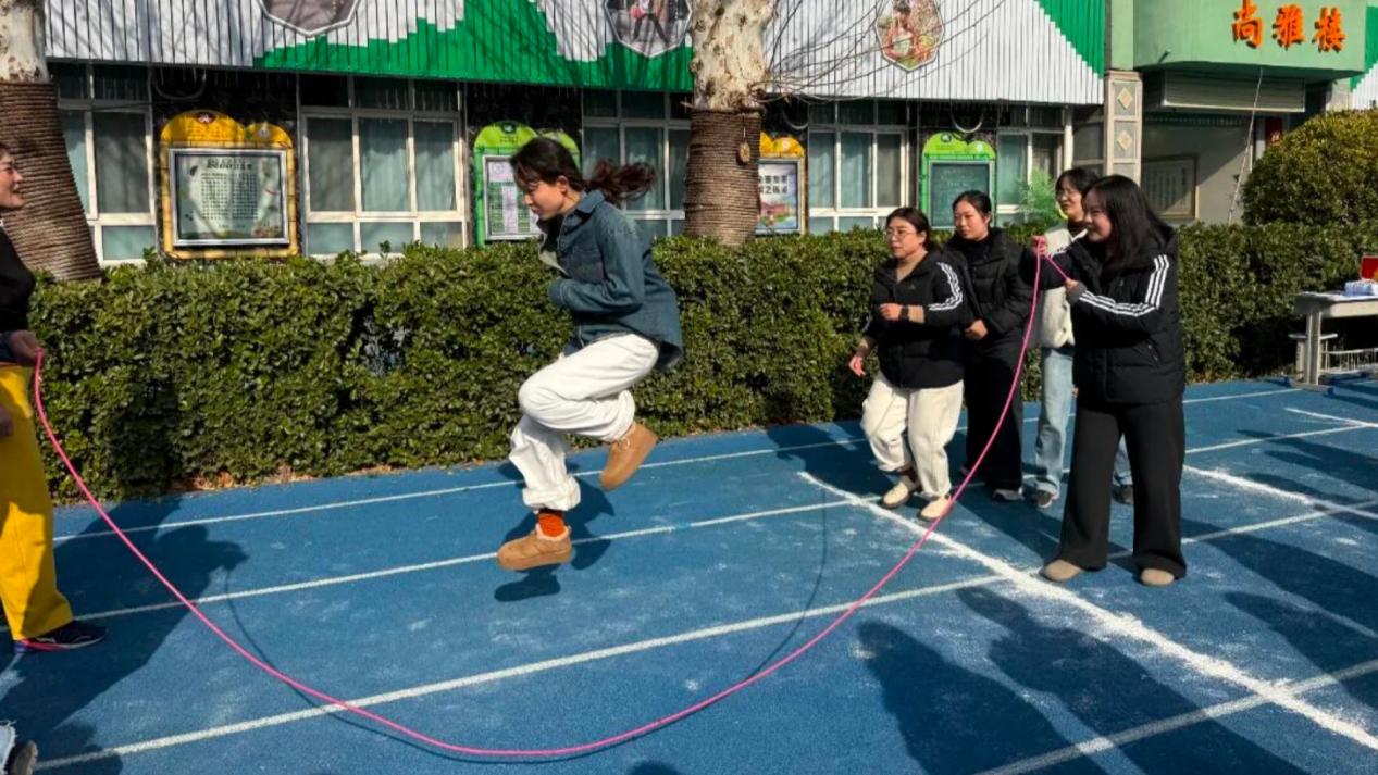 在拔河比赛中,参赛教师紧握长绳、齐心协力,奋力拼搏;场边啦啦队热情高涨,“加油”声此起彼伏,将团队协作精神演绎得淋漓尽致。跳大绳项目则考验默契与节奏感,摇绳者稳控节拍,跳跃者轻盈穿梭,配合流畅,赢得阵阵掌声。