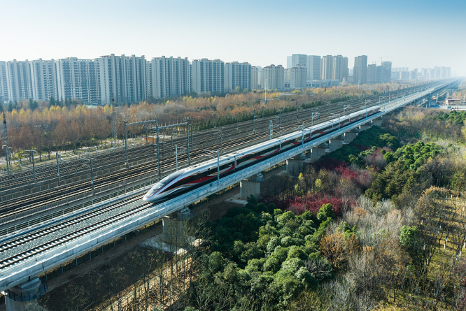 (一列智能复兴号动车组列车刚刚从西安北站开出。刘翔/摄)