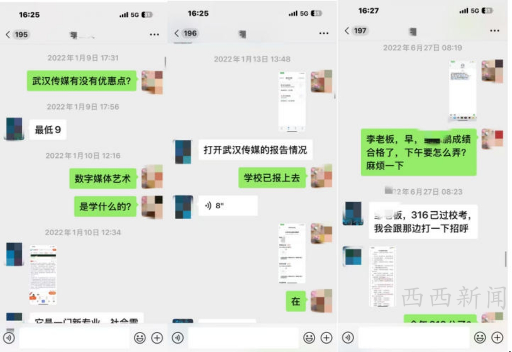 聊天记录显示五艺画室负责人向学生家长承诺会跟“那边”打招呼