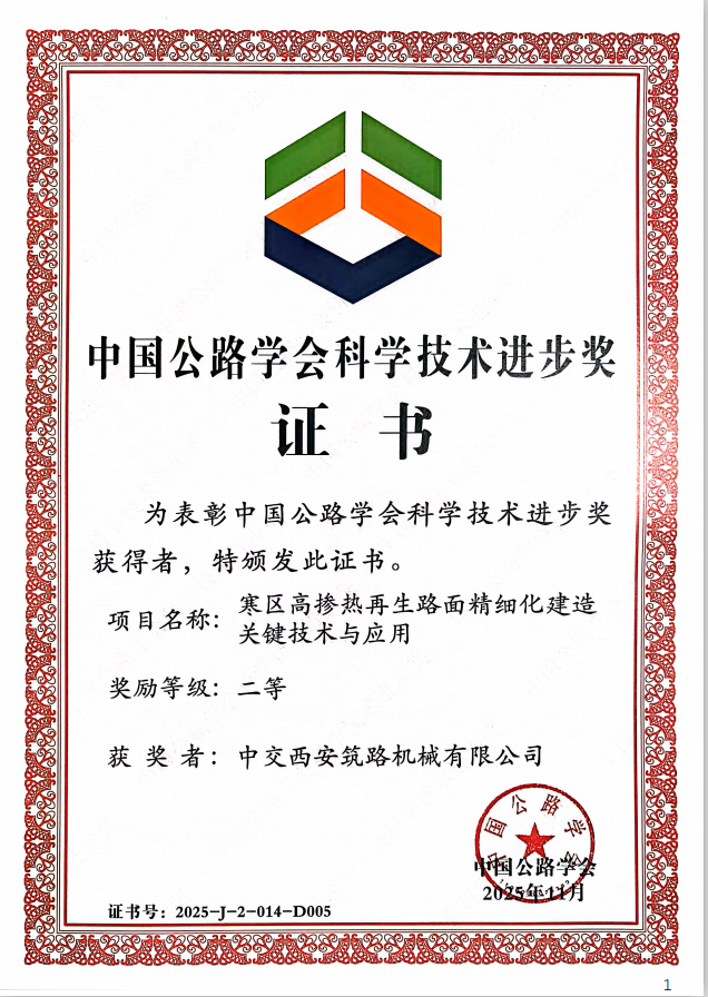 近日,2025年度中国公路学会科学技术奖评审结果正式揭晓。经开区企业中交西筑参与研发的“寒区高掺热再生路面精细化建造关键技术与应用”项目,凭借突出的创新价值与应用成效,荣膺科技进步二等奖。
