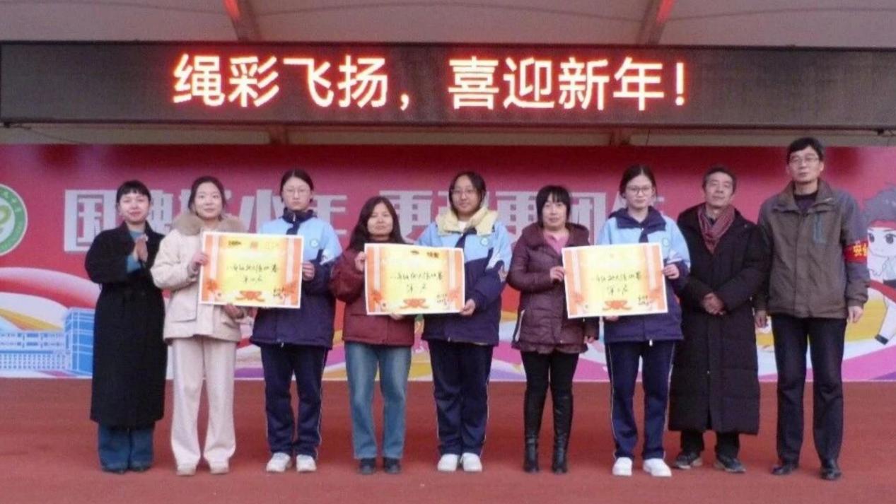 当日下午,操场变身欢乐赛场。冬季跳大绳比赛中,七年级至高二年级22个班级的“绳”采少年齐聚。各班12人组成团队,2人摇绳、10人跳绳,3分钟内比拼累计次数与失误控制。赛前,体育委员自发组织训练,班主任化身“教练”指导“8字型”走位;赛中,彩绳翻飞如虹,健儿跃动似龙,呐喊声与欢笑声交织。政教处巨刚主任表示:“跳绳不仅锻炼心肺功能与协调性,更培养了规则意识、抗挫能力与团队精神,为冬日校园增添活力。”
