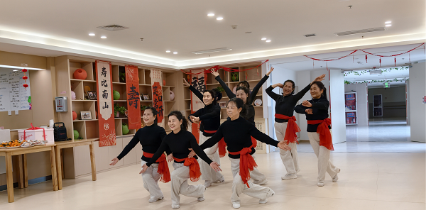 与此同时,活动大厅内的文艺演出也正式开场。志愿者们纷纷登台展示才艺,歌曲、舞蹈、乐器演奏等节目依次呈现。经典红歌旋律悠扬,欢快舞步轻盈活泼,每个节目都赢得老人们阵阵掌声。不少老人跟着节奏轻声哼唱,或情不自禁打起拍子,现场气氛温馨而热烈。