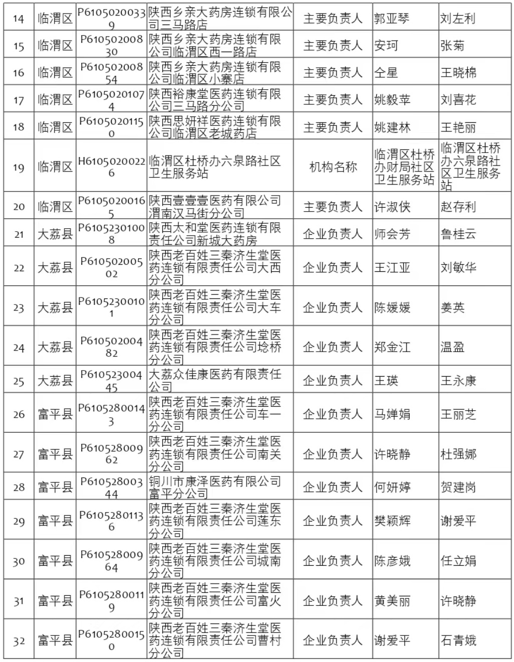 本次公示的45家定点医药机构覆盖渭南市多个区县,包括蒲城县、临渭区、大荔县、富平县、潼关县、合阳县、华阴市等。变更项目主要包括企业负责人、主要负责人、经营地址、机构名称等。